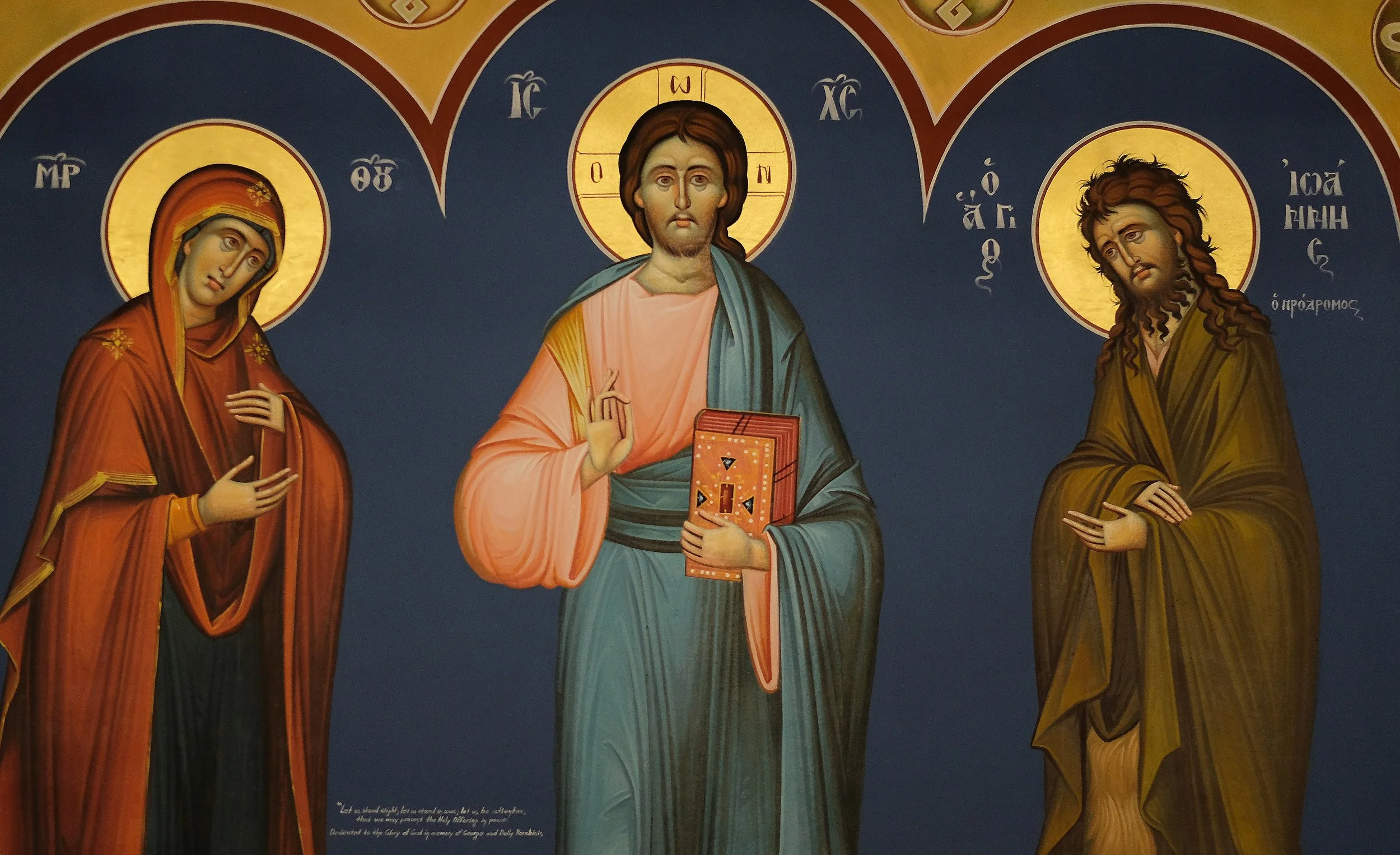 Deisis Iconography: Christ at the center of all wisdom, with the Theotokos and St. John the Baptist interceding for the world.